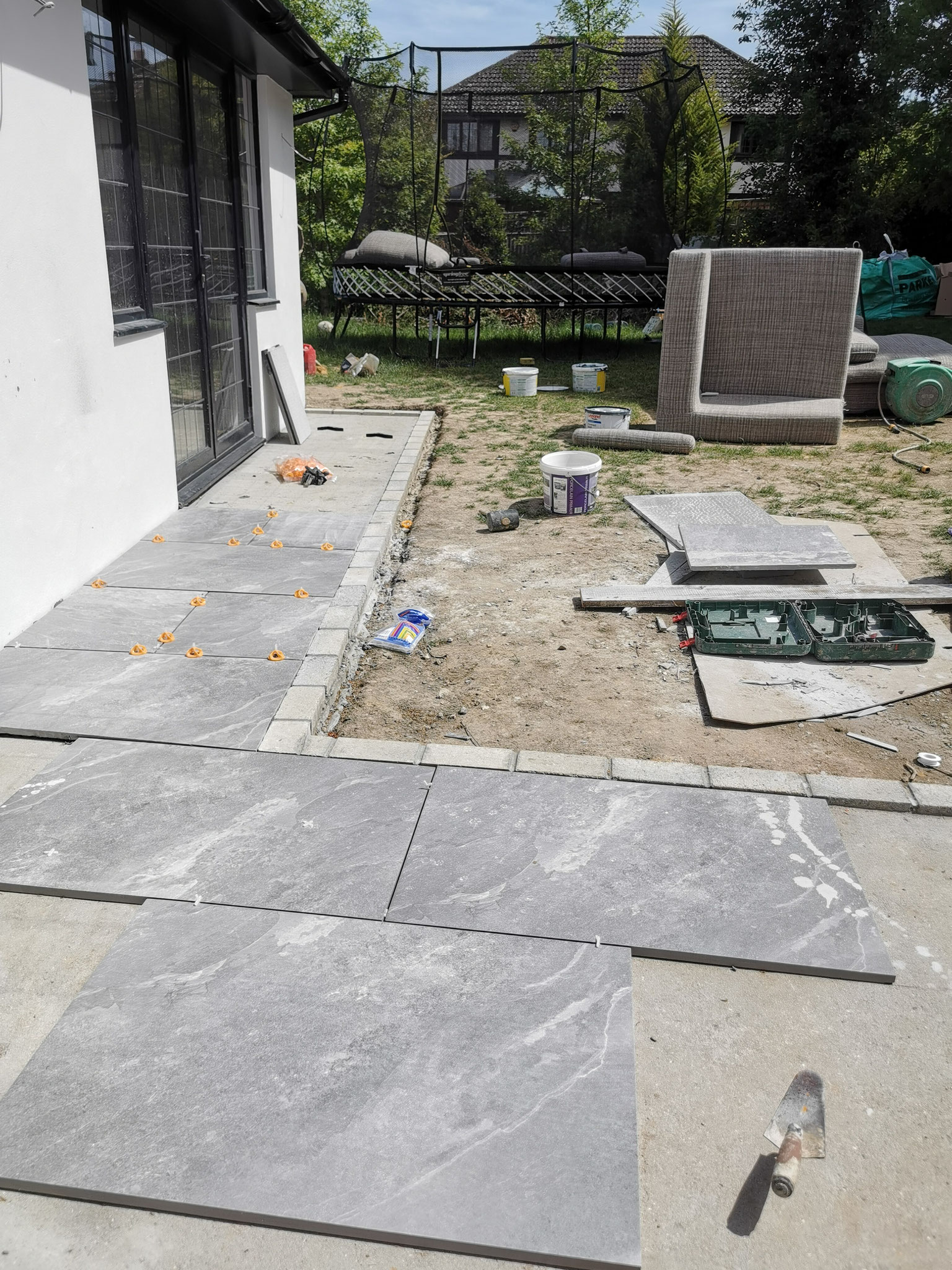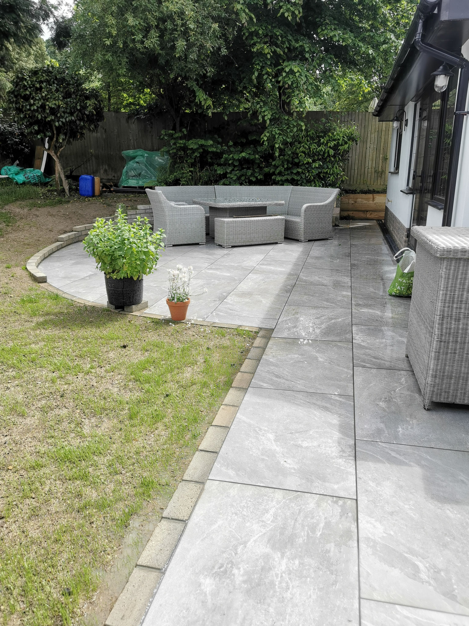 - Porcelain Patio with retaining walls