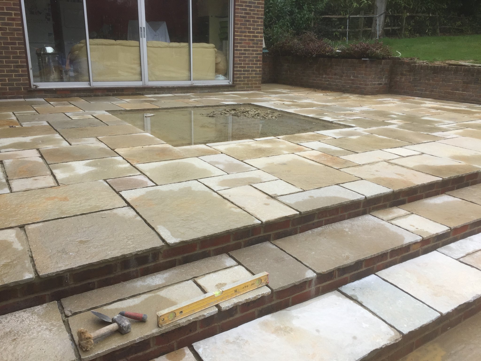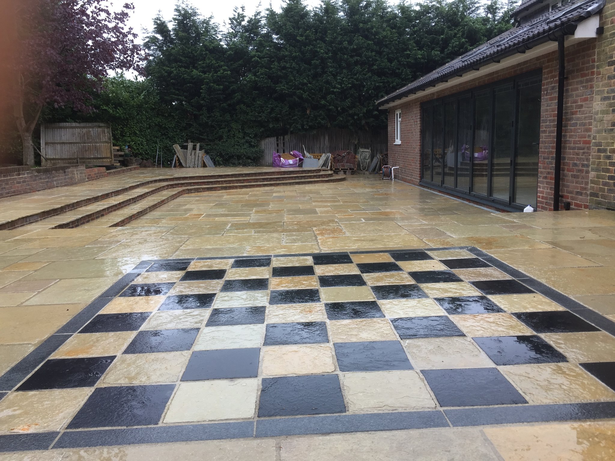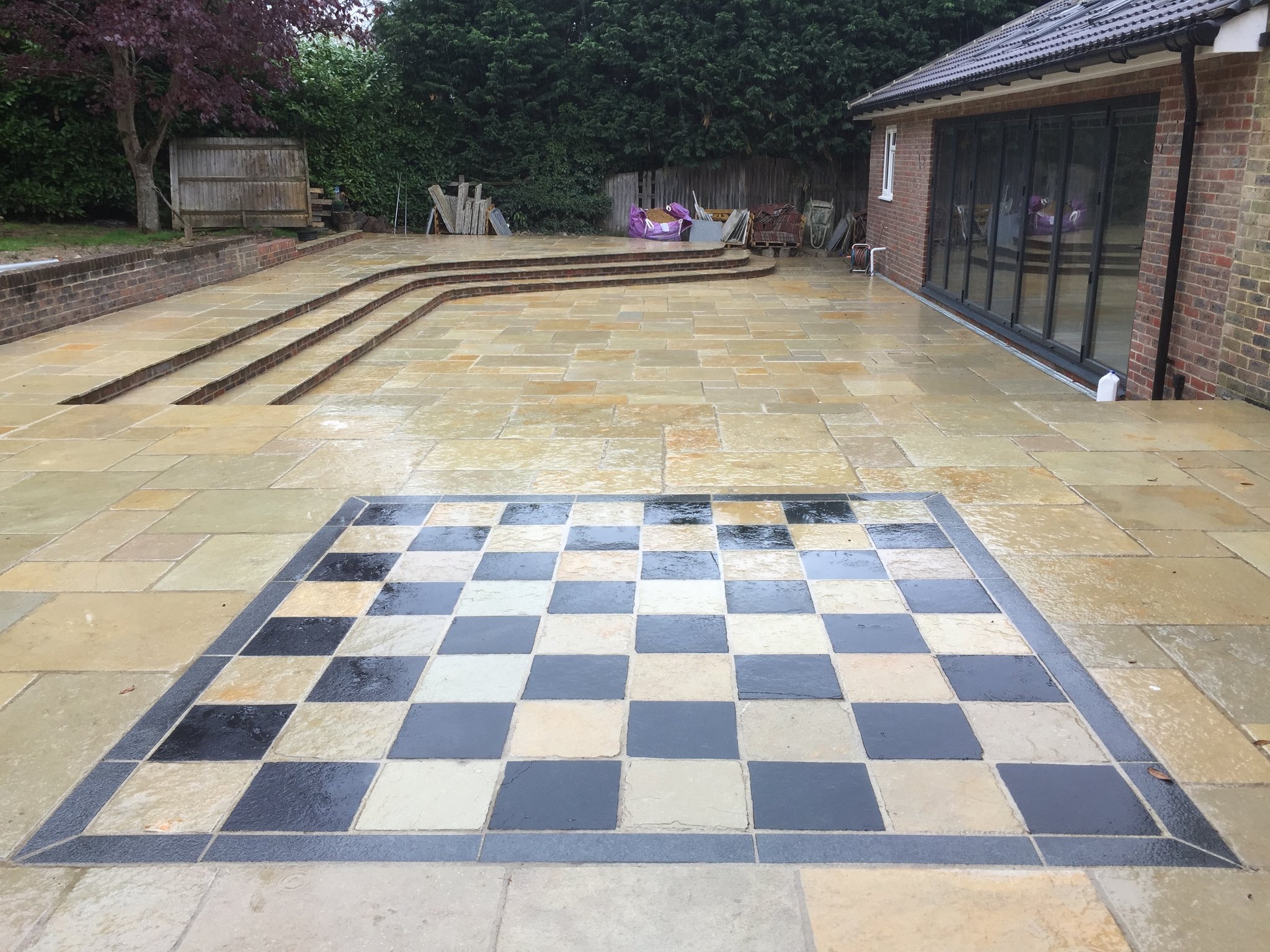 - Limestone patio complete with Chess Board